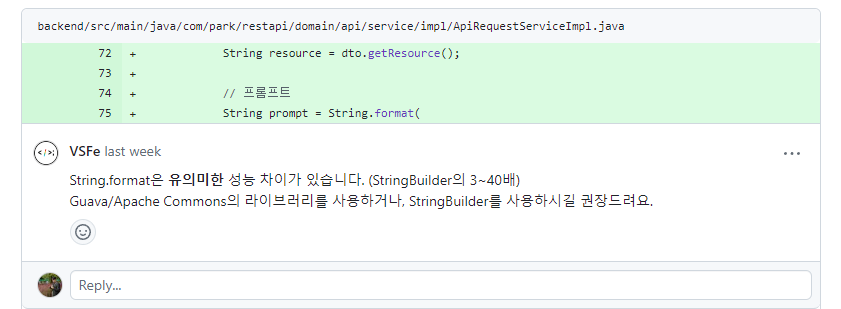 String.format()은 성능이 떨어진다는 문제가 있다.